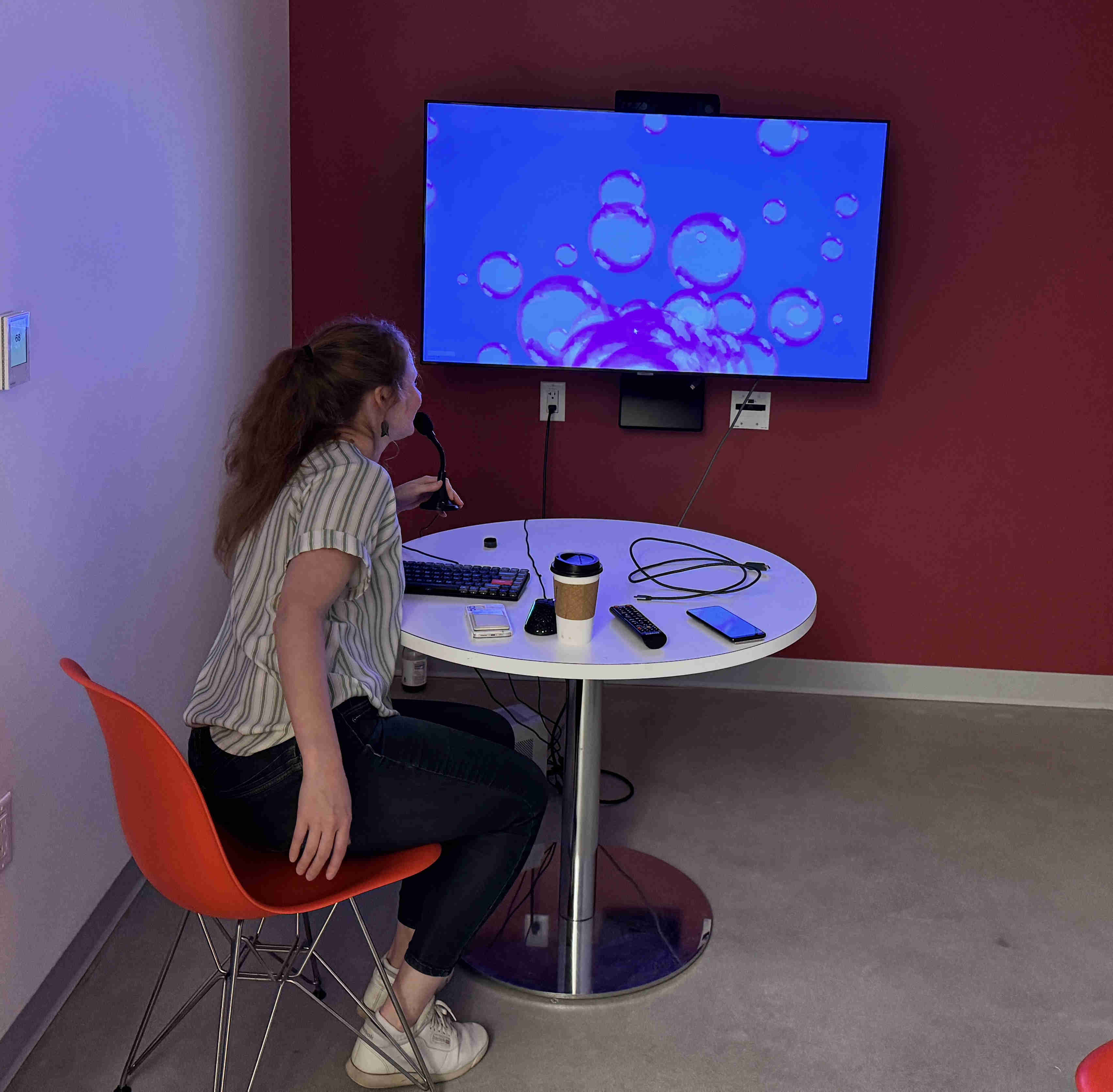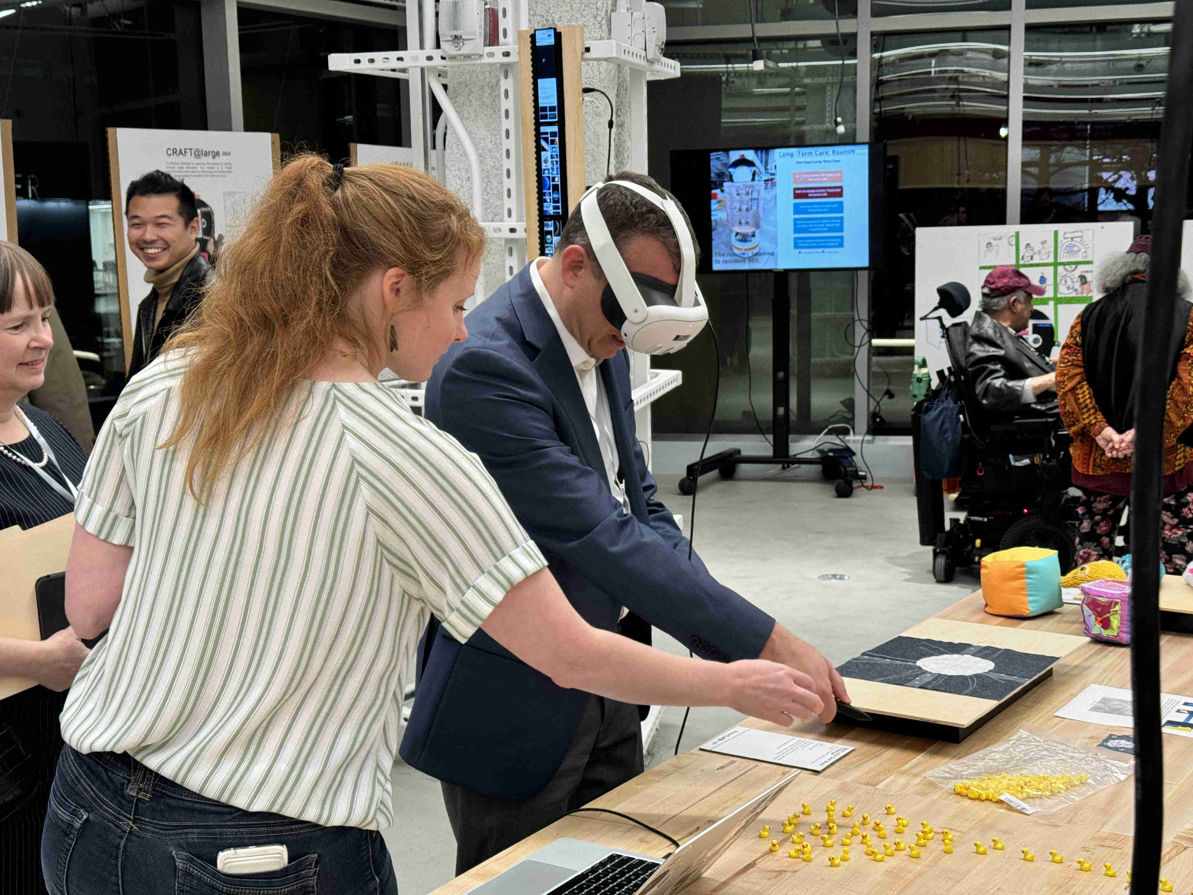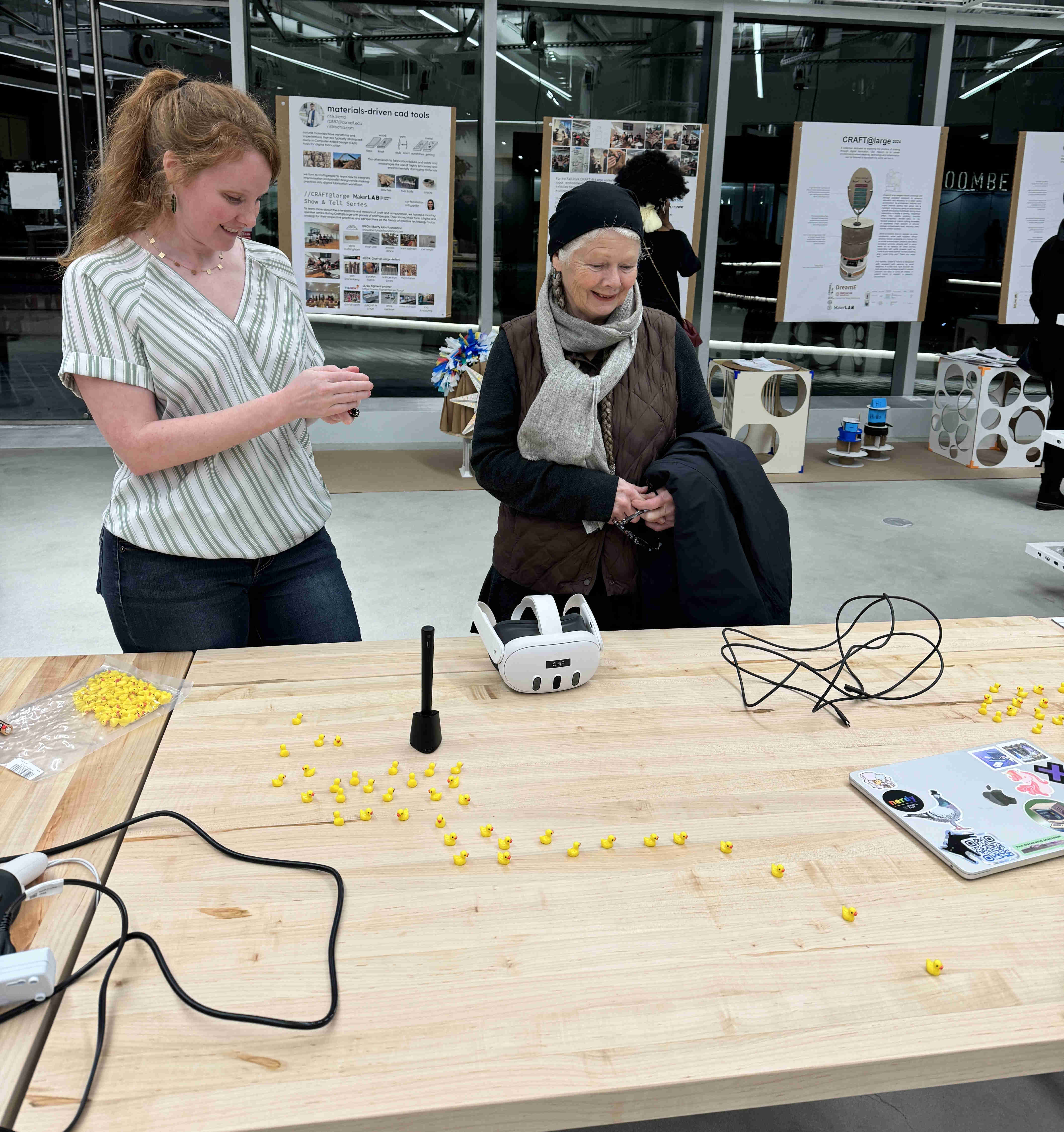 Showing the dean of Cornell Tech the game A Duck Full, a game where you can bedazzle ducks in VR.
