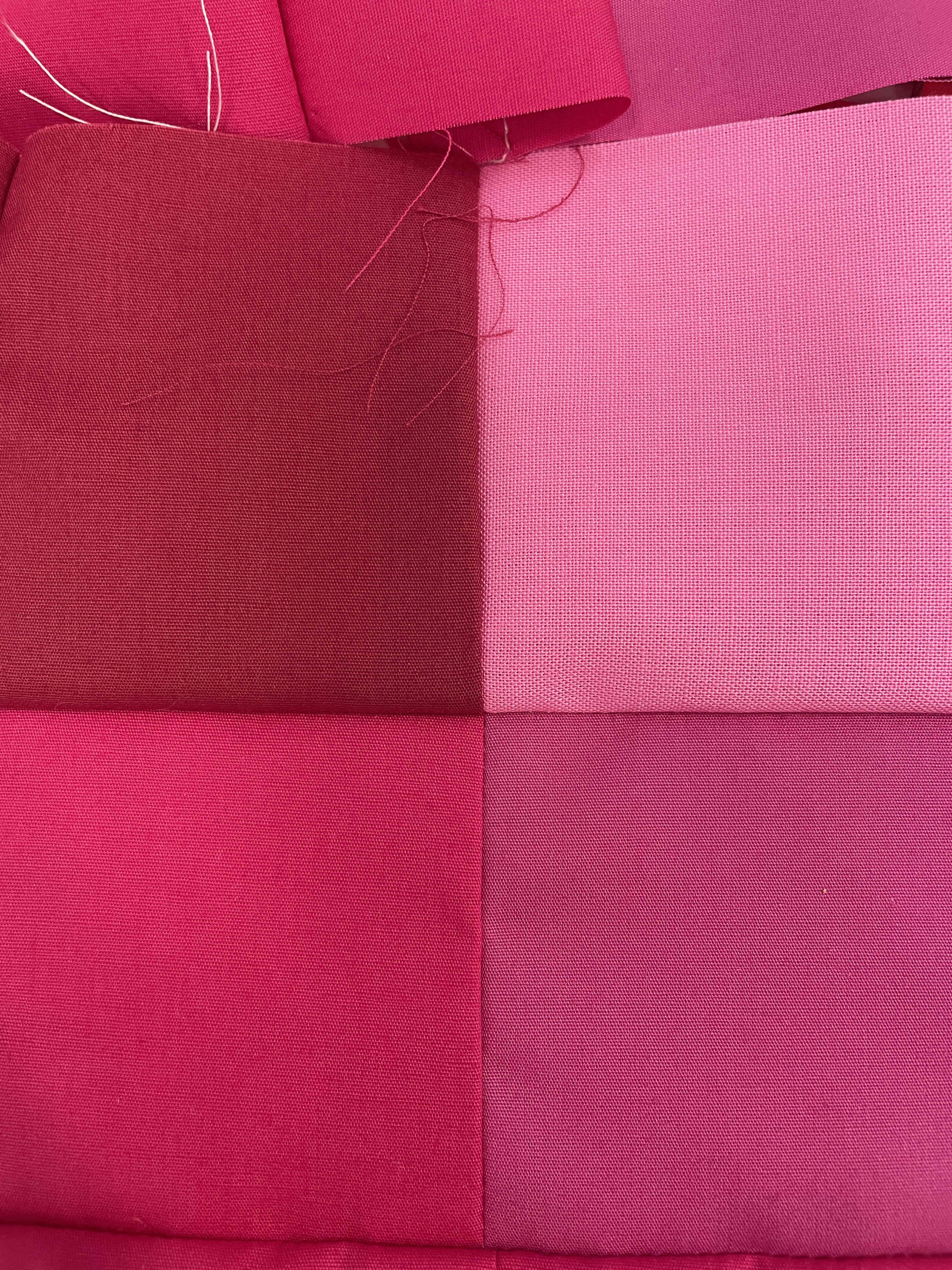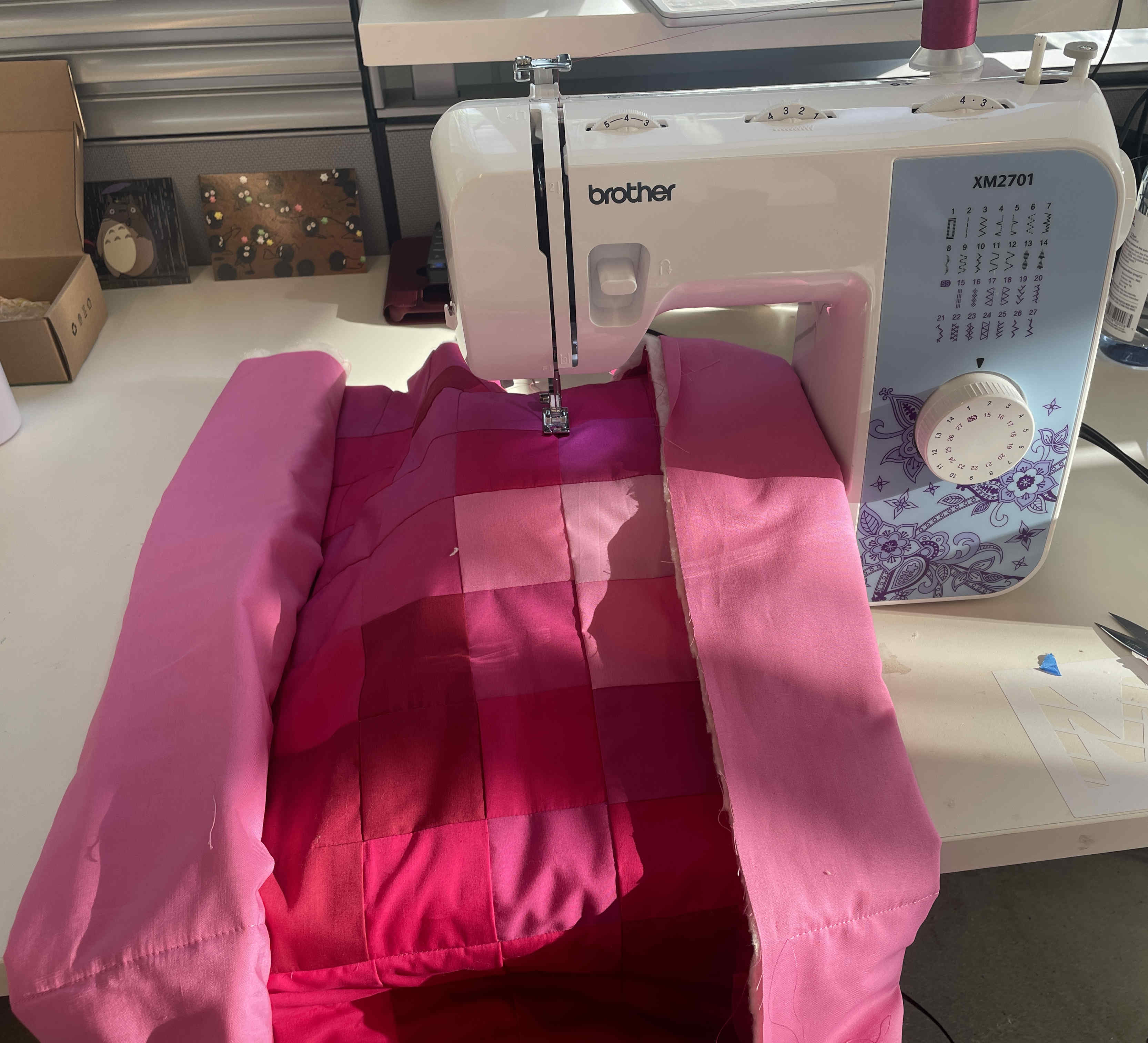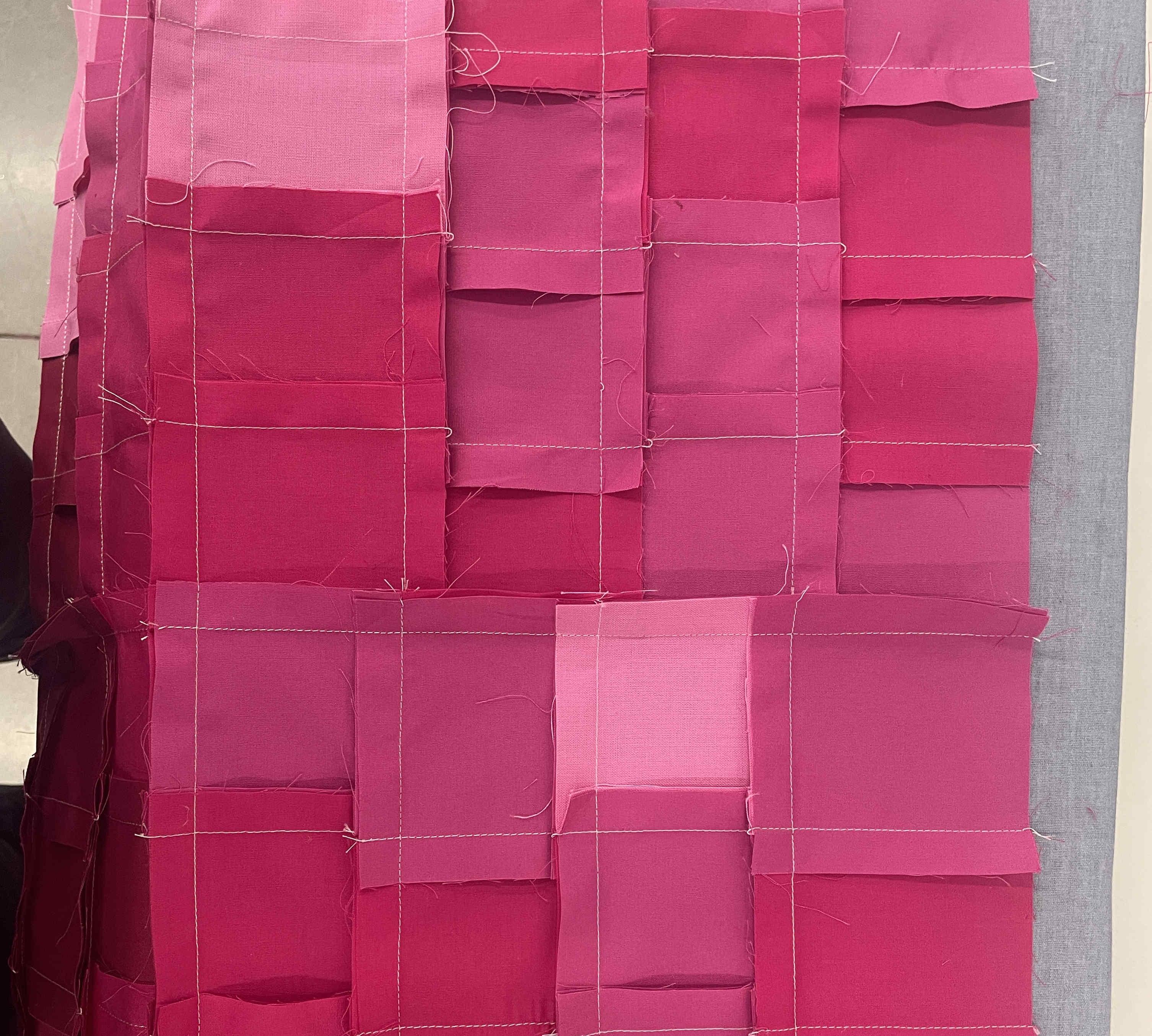 The inspiration for this project combined two big interests of mine: the color pink and making math quilts. My previous math quilt exploration was the Fast Fourier Transform project. I'm obsessed with the color pink, so I challenged myself to create the pinkest quilt possible. I've come across pink noise when I've looked for background sound to help me sleep, and when I took a stats class this year I started to think of how to portray these filters visually. From an auditory perspective, pink noise is "softer" than white noise, so I wanted to explore how that would look when represented in soft textile materials.