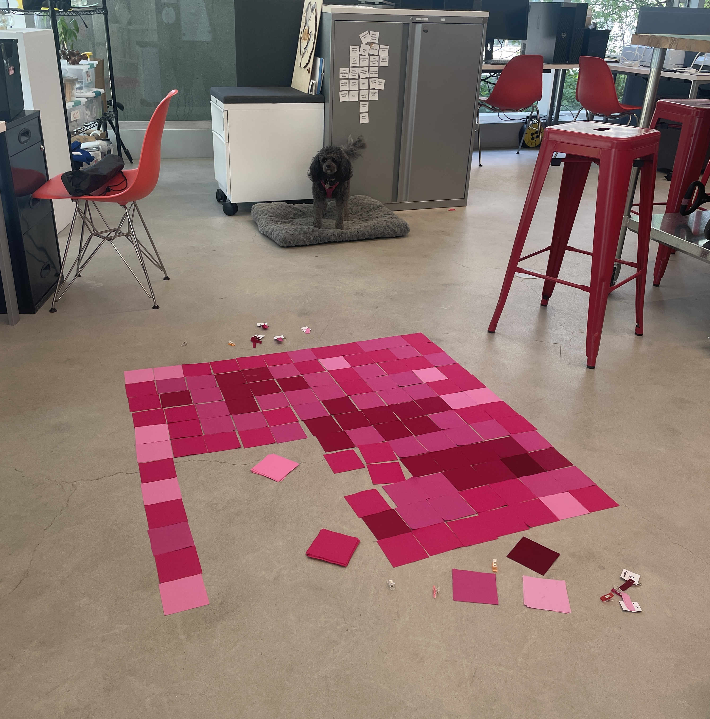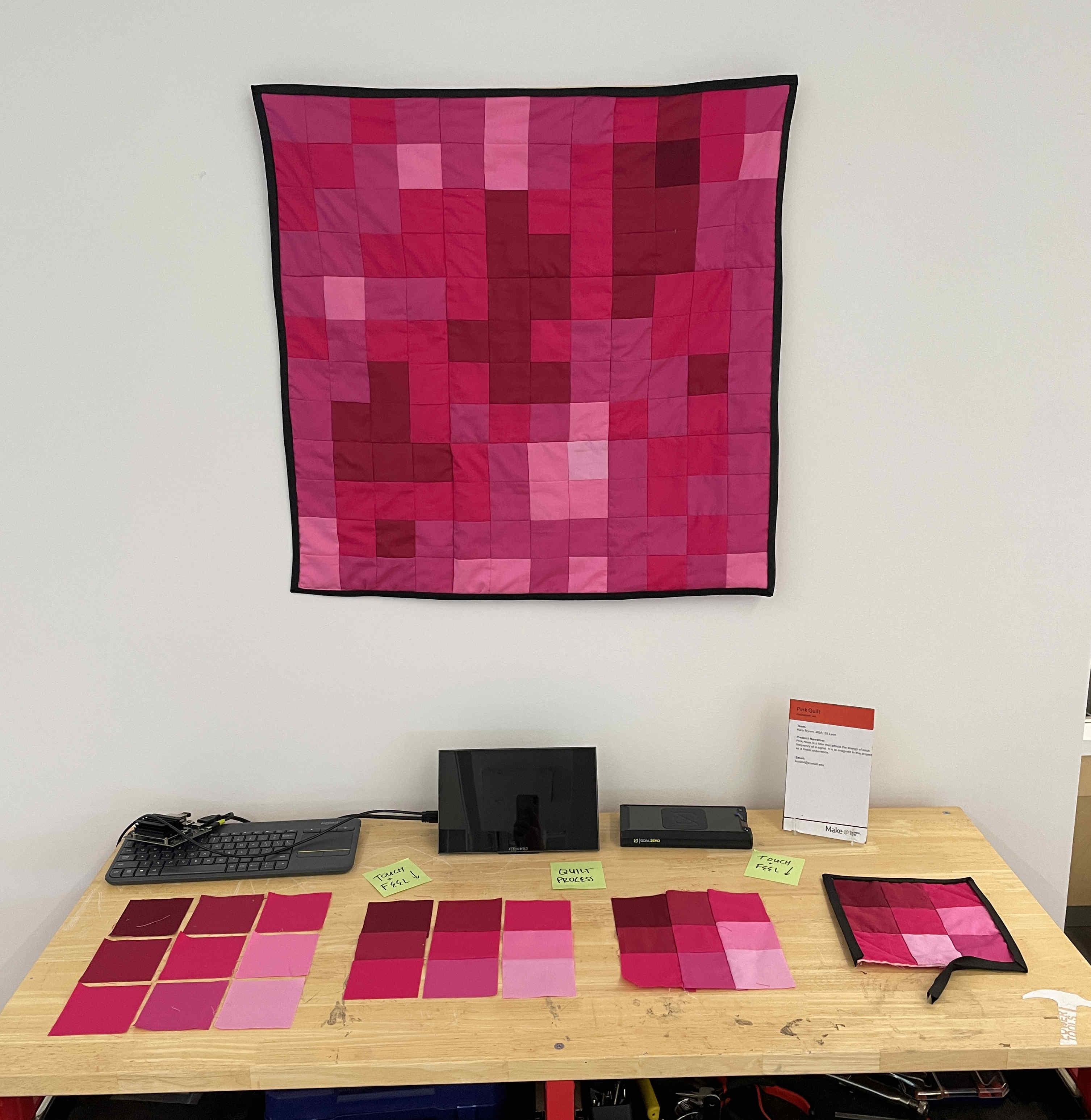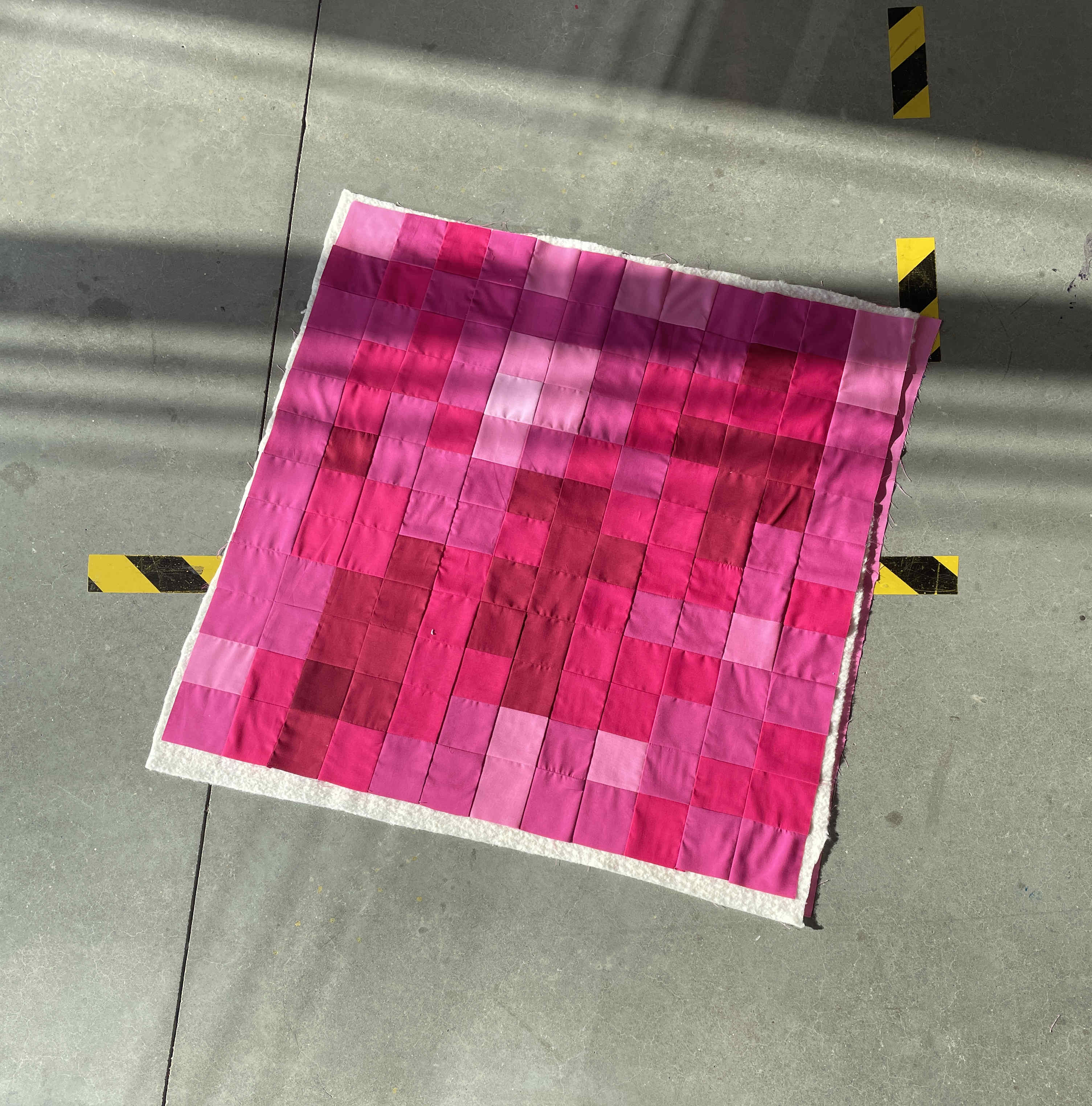 There is something unique and strange about seeing the quilt in a physical space. It feels like it's at a different resolution than the rest of the world, and the saturated pinks are a surprising color in their context.
