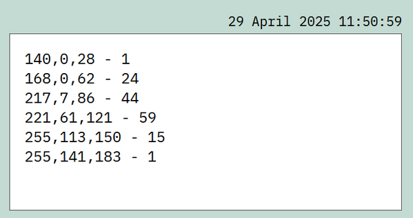 Prompted AI to reformat the data so that it displayed RGB in one line.